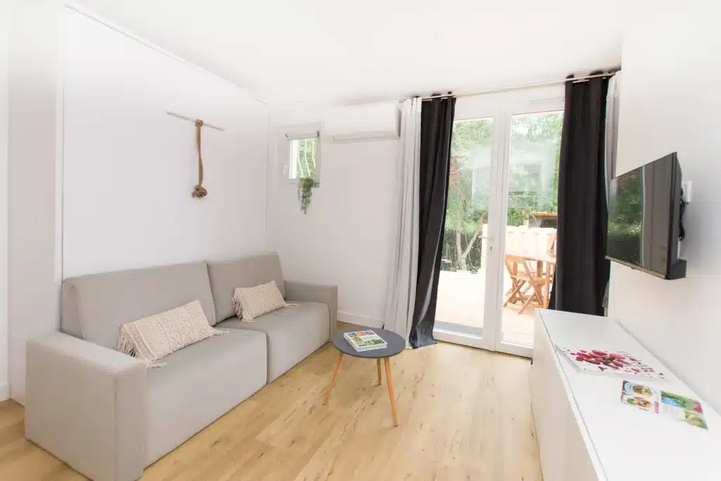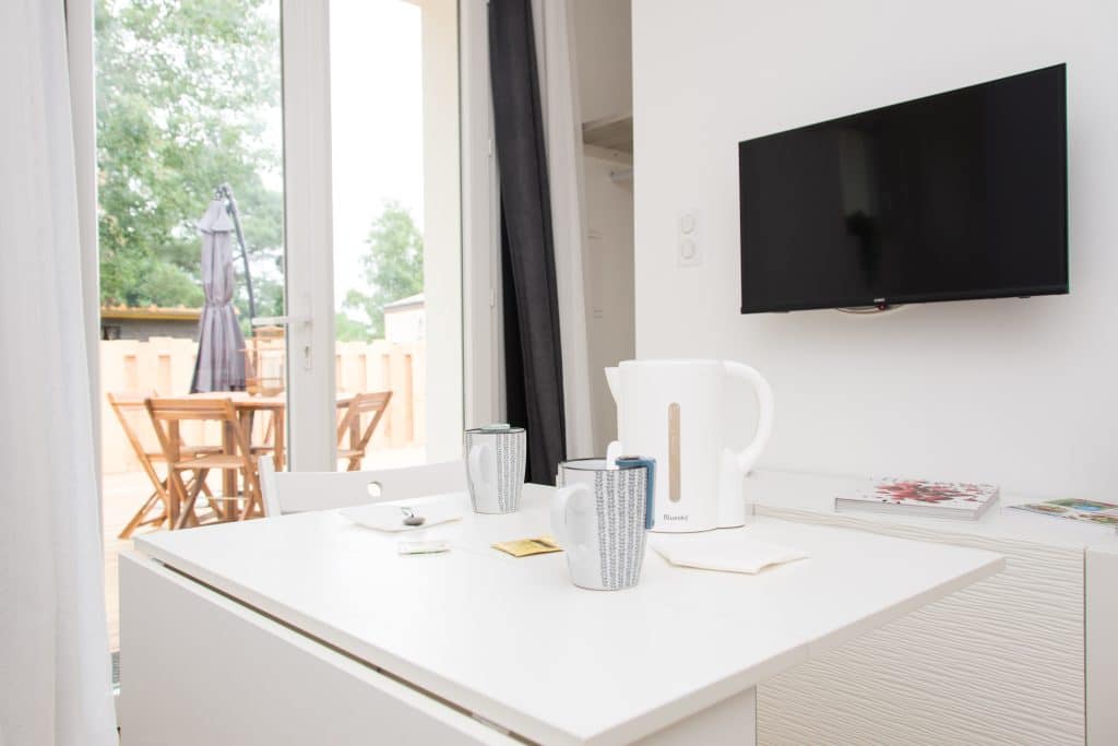 - Barbecue partagé, Borne de recharge sur le parking, Bouilloire, Buanderie partagée (lave-linge et sèche-linge, Chiliennes, Climatisation naturelle, Fer à repasser, Jacuzzi privatif en option, Mini frigo, Moustiquaire, Parasol, Parking sécurisé, Plancha partagée, Salon de jardin, table à repasser), TV, Ventilateur, Wifi fibre