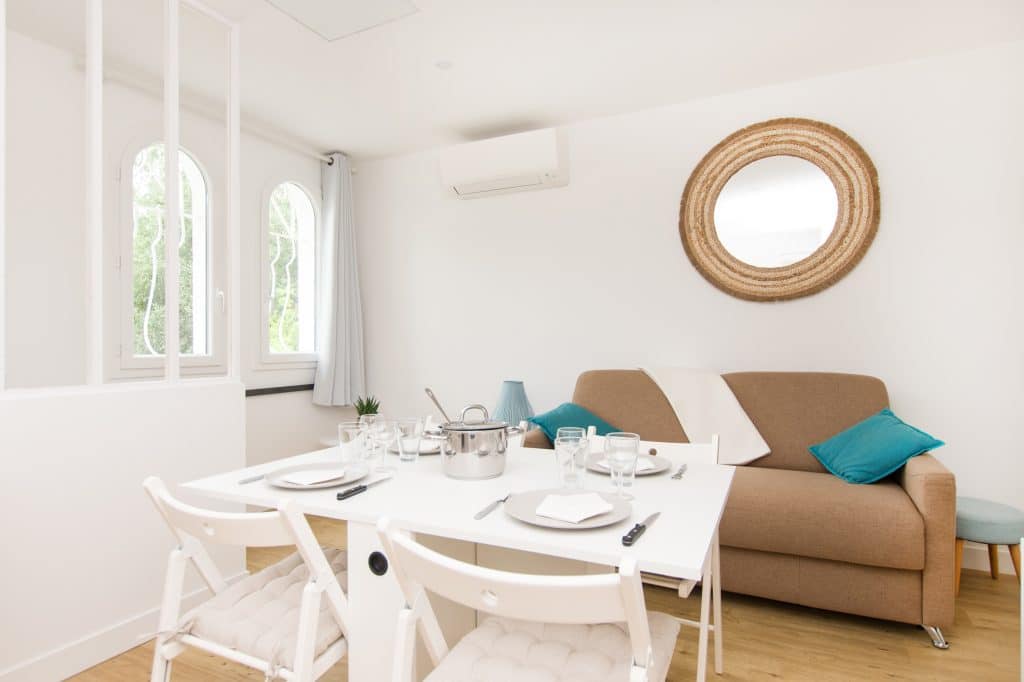- Barbecue partagé, Borne de recharge sur le parking, Bouilloire, Buanderie partagée (lave-linge et sèche-linge, Cafetière, Chiliennes, Climatisation réversible, Fer à repasser, Grille-pain, Lave-vaisselle, Micro-ondes grill, Moustiquaire, Parasol, Parking sécurisé, Plancha partagée, Plaque induction 3 feux, Réfrigérateur congélateur, Salon de jardin, table à repasser), TV, Wifi fibre